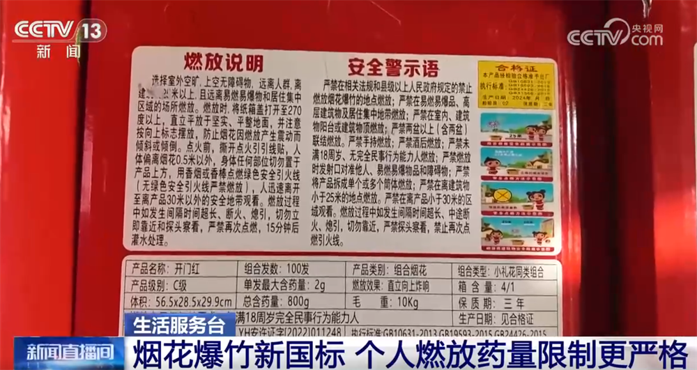 针对当前产质量量存正在的凸起问题,组合烟花等支流产物的长度高度、筒体曲径等易于检测鉴定的手艺目标要求,便于监管人员以及社会曲不雅识别超标犯禁产物、质量不及格产物。此外,新尺度新增了夹杂包平安,明白夹杂包不该拆有双响、小礼花组合烟花等含爆的产物,正在确保平安的根本上满脚市场需求。对产物名称、品级、警示语等包拆标记也进一步做出明白,要求内容全面、精准,字体清晰、夺目,便于消费者阅读领会。5月1日起,外包拆必需标注完整规范的消息,贫乏任一环节消息均视为不及格产物,严禁发卖取采办。